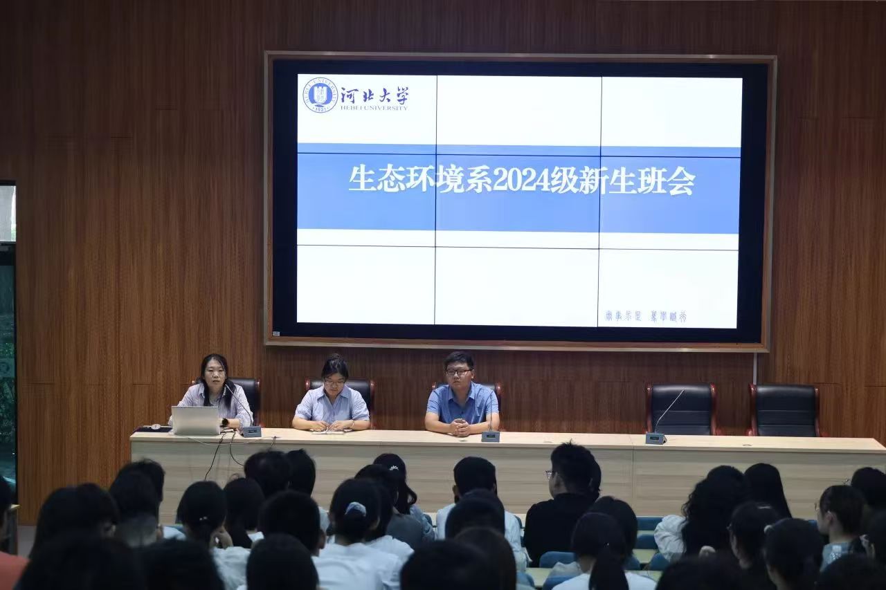 8月23日上午9点,河北大学生态环境系2024级本科新生班会在电信楼阶梯教室举办第一次新生班会。专职辅导员陈国春、学业指导班主任和全体新生参会。会上辅导员陈国春向同学们介绍学校及学院概况,接下来的军训工作要求、班级管理规定等事项,同时要求同学们务必遵守校规校纪,注意生活用电、消防安全,严防电信诈骗等问题。两位学业指导班主任主要向新生介绍专业设置、发展方向、主要课程及专业特点等,帮助指导学生树立专业思想,更好“吃透”所学专业、课程体系、科技前沿及就业去向等,合理制定学业目标。